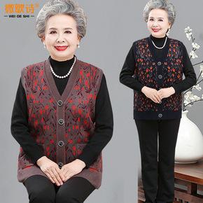 中老年人女装秋冬马甲妈妈装老太太奶奶羊毛针织背心老...