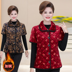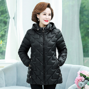 中年妈妈羽绒棉服短款轻薄中老年时尚亮面棉衣宽松大码...