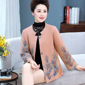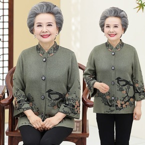 中老年秋装女奶奶毛衣妈妈装针织开衫外套老太太春秋上...