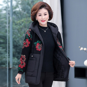 中老年棉衣女冬装2021新款妈妈小碎花复古棉袄小个...