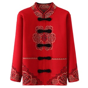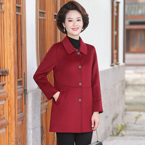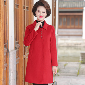 妈妈秋装红色婚宴礼服外套中老年女装秋冬呢子大衣喜婆...