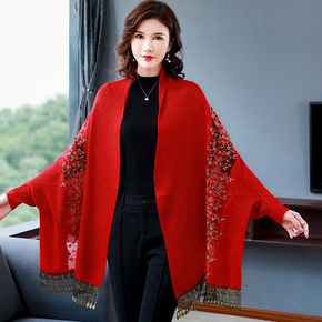 妈妈秋装旗袍披肩新款外搭民族风时尚婚礼休闲中老年秋...