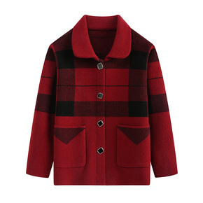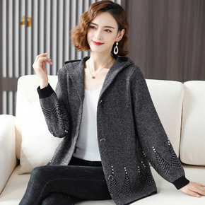 双面水貂绒外套女中长款春秋针织开衫毛衣中老年妈妈装...