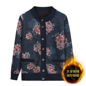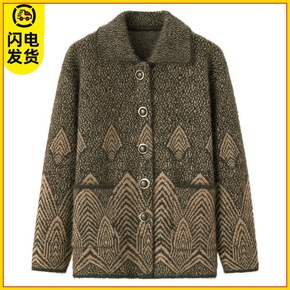 中老年人羊毛衫秋冬装新款妈妈针织衫毛衣老太太外套奶...