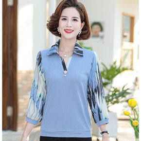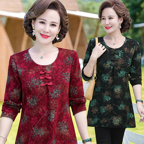 妈妈装秋季新款中老年女士休闲长袖上衣修身遮肚气质优...
