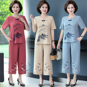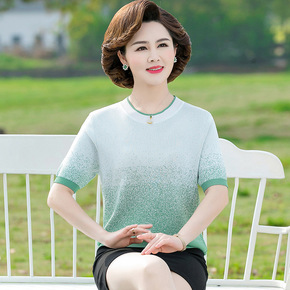 妈妈装夏季圆领短袖t恤宽松洋气中老年女装冰丝针织小...