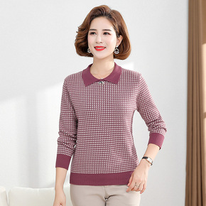 妈妈秋冬短款打底衫上衣40岁50中年妇女装洋气针织...
