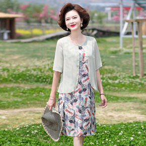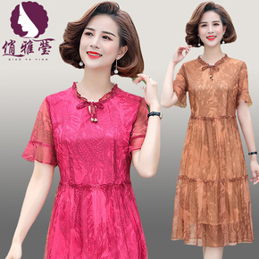 2021新款妈妈夏装洋气连衣裙中年女装短袖中老年气...