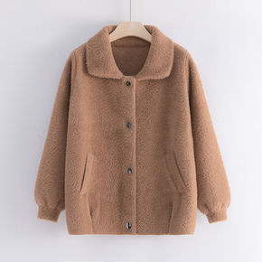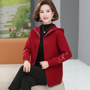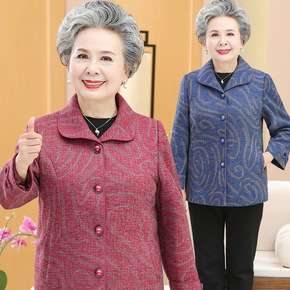 奶奶秋冬呢子外套中老看人女装长袖翻领时尚上衣妈妈毛...