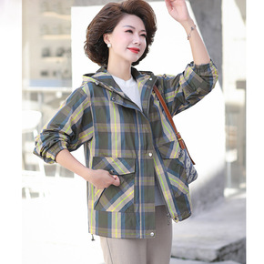 中年妈妈秋装风衣外套洋气格子上衣中老年女装阔太太宽...