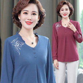 中老年女装打底衫长袖上衣秋装洋气中年胖妈妈装小衫T...