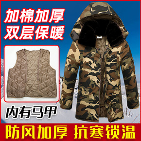迷彩大衣东北冬季加绒加厚棉衣男士冷库御寒棉袄劳保迷...