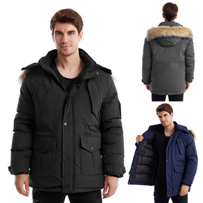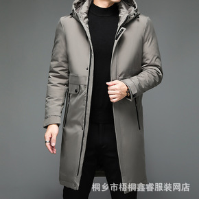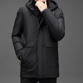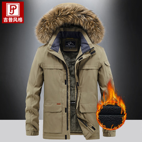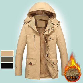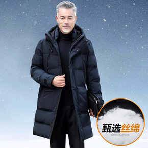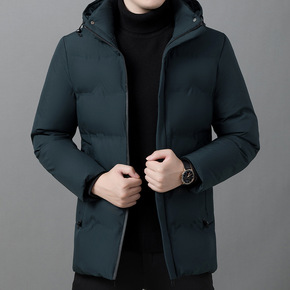 冬季男士中长款羽绒棉加厚保暖可拆卸连帽中老年爸爸冬...
