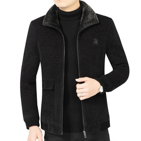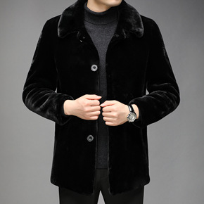秋冬新款仿貂绒外套男大衣草水貂毛中长款大码中老年爸...
