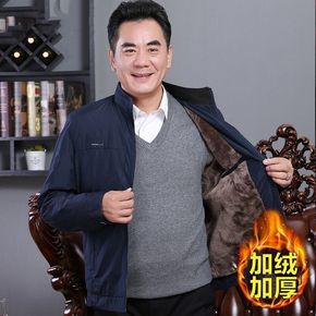短款爸爸冬季外套秋冬装加绒中年男士夹克棉袄上衣中老...