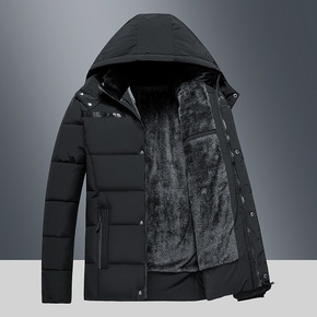 跨境中老年人棉衣男加绒加厚脱卸帽爸爸冬季保暖棉袄宽...