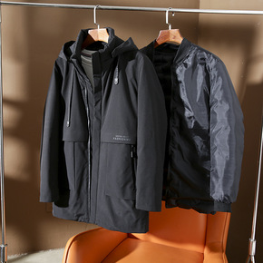 新款中老年棉衣男外套中长款可脱卸内胆冬季保暖棉衣男...