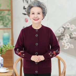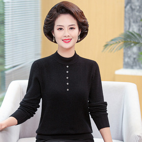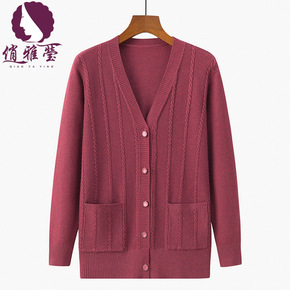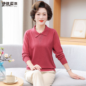 俏雅莹妈妈装秋季新款针织衫纯色洋气简约遮肉宽松中老...