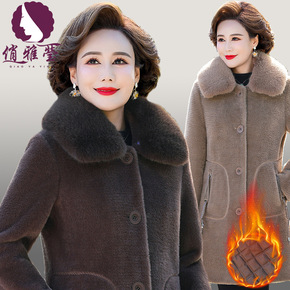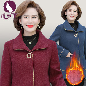 俏雅莹妈妈装秋冬新品人造毛呢外套夹棉保暖翻领纯色中...