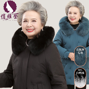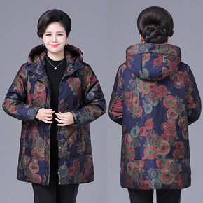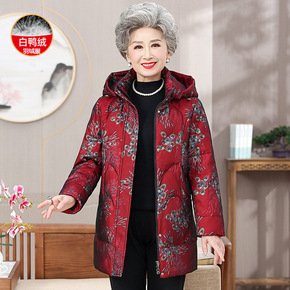 中老年女装连帽新款女装复古中长款羽绒服外套上衣白鸭...