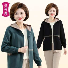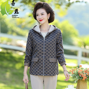 妈妈秋装外套短款2022新款洋气高贵连帽上衣中老年...