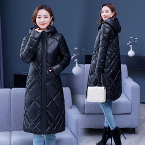 亮面棉服女中长款2021年新款大码宽松潮冬季加厚中...