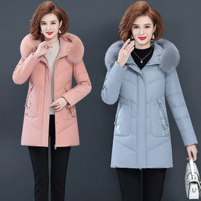 21新款妈妈装棉衣女中长款洋气轻薄羽绒棉服40岁5...