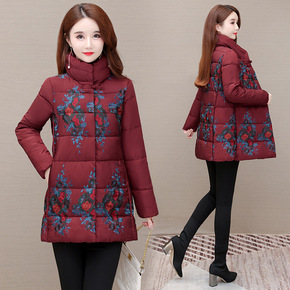 冬中年妈妈绣花羽绒棉衣短款少妇棉服中青年女棉袄立领...