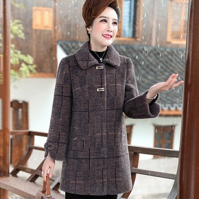 【好品质】中老年女装毛呢外套秋冬中长款妈妈装大码风...