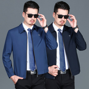 男士夹克薄款外套2021中年商务翻领夹克男休闲春秋...