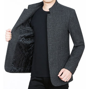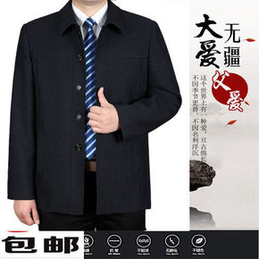 春秋季新款中年男士夹克休闲羊毛呢外套男爸爸装立领百...
