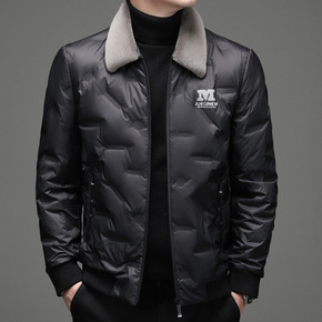 2022新款90绒羽绒服男短款冬季羊毛翻领中年男士...