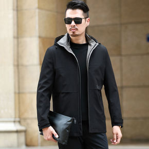 中年男士休闲连帽可脱卸夹克爸爸春装外套男商务成熟春...