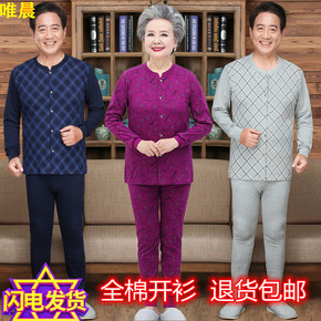 中老年人保暖内衣女套装纯棉夹棉加厚开衫秋衣秋裤男爸...