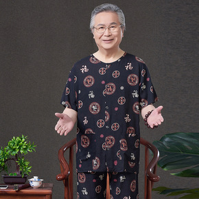 中老年男装爸爸装睡衣老爷子夏季家居服棉绸短袖开衫居...