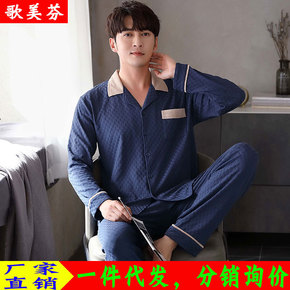 睡衣男长袖春秋冬纯棉翻领开衫全棉宽松休闲中老年爸爸...