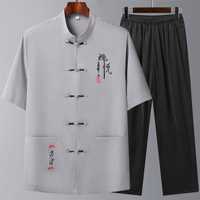 老人衣服唐装套装古风休闲父亲爸爸爷爷中老年中国风短...