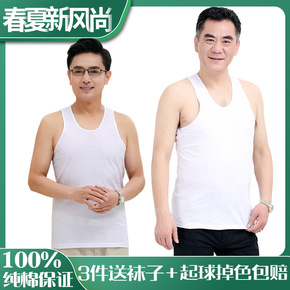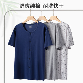 爸爸汗衫老头衫纯棉圆领短袖男士夏季打底背心全棉中老...