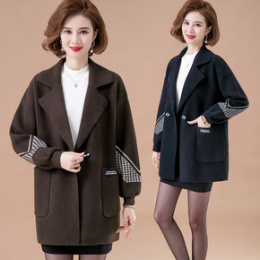呢子外套春秋女装秋装绒水貂上衣时尚仿四五十岁妈妈衣...
