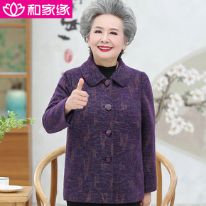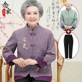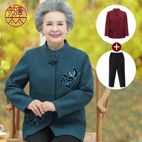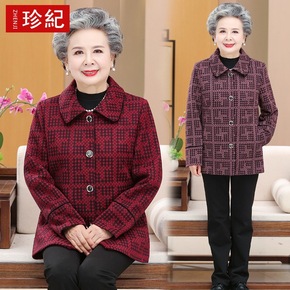 老年人秋装女毛呢外套60岁70衣服老太太唐装奶奶春...