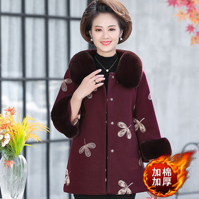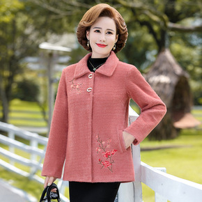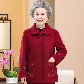 中老年人春秋外套女妈妈毛呢外衣立领唐装奶奶装秋冬绣...