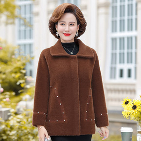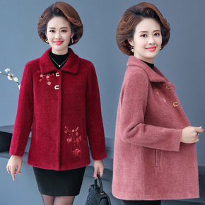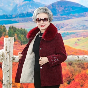 奶奶装水貂绒外套老太太妈妈装羊绒大衣老人衣服老年人...