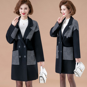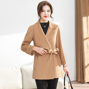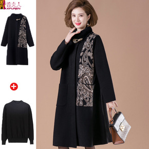 胖妈妈洋气新款双面羊绒大衣中老年人女装羊毛呢子外套...