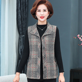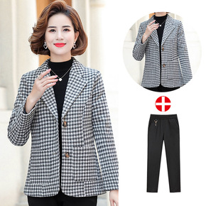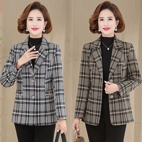 奶奶装呢子外套中老年女装婆婆外穿上衣秋冬新款格子印...