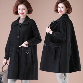 胖妈妈中长款毛呢外套2021新款中老年人女装秋冬大...