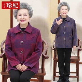 中老年女装秋冬外套呢子上衣奶奶装婆婆开衫时尚外套...
