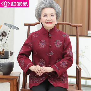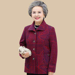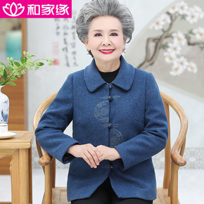 奶奶装秋装毛呢外套中老年人女老太太春秋上衣服老妈妈...