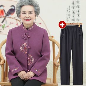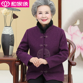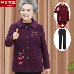 奶奶装秋装老年人服装毛呢外套女大码70岁60胖妈妈...