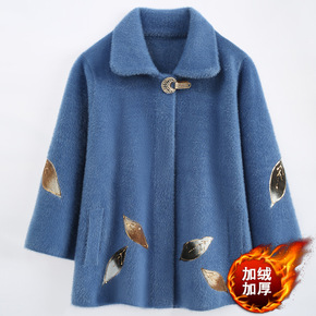 MN-8809中老年人秋冬加绒加厚毛呢外套奶奶水貂...