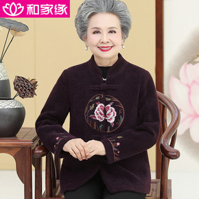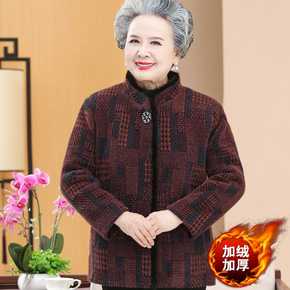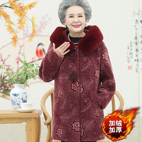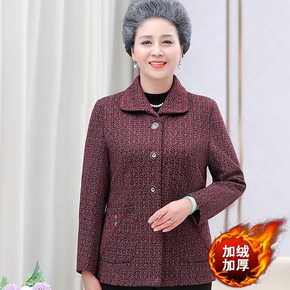 LH-95奶奶秋冬加绒加厚外套老年人女装妈妈上衣翻...